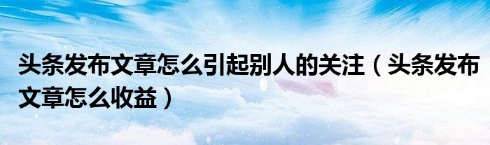大家好,跳跳为你解答以上问题。头条发布文章怎么引起别人的关注,头条发布文章怎么收益这个问题很多人还不知道,现在让我们一起来看看吧!