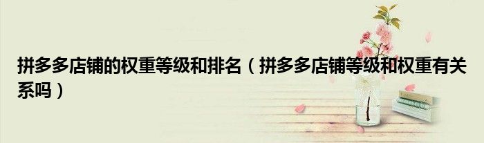 大家好,跳跳为你解答以上问题。拼多多店铺的权重等级和排名,拼多多店铺等级和权重有关系吗这个问题很多人还不知道,现在让我们一起来看看吧!