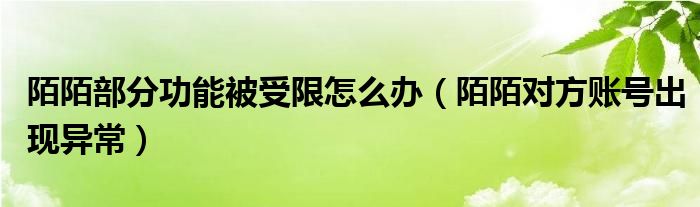 大家好,跳跳为你解答以上问题。陌陌部分功能被受限怎么办,陌陌对方账号出现异常这个问题很多人还不知道,现在让我们一起来看看吧!