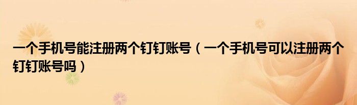 解答:1、一个手机号不能注册两个钉钉账号。一个手机号只能注册一个钉钉账号。注册后,可以用这个手机号在其他手机上登录,但登录的是同一个账号。