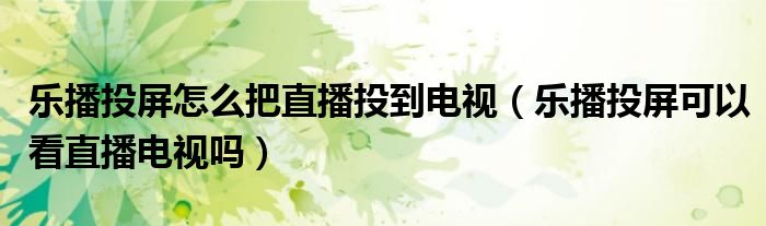 大家好,跳跳为你解答以上问题。乐播投屏怎么把直播投到电视,乐播投屏可以看直播电视吗这个问题很多人还不知道,现在让我们一起来看看吧!