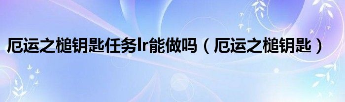大家好,慧慧来为大家解答以上问题,厄运之槌钥匙任务lr能做吗,厄运之槌钥匙很多人还不知道,现在让我们一起来看看吧!