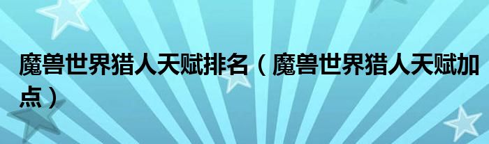 大家好,慧慧来为大家解答以上问题,魔兽世界猎人天赋排名,魔兽世界猎人天赋加点很多人还不知道,现在让我们一起来看看吧!