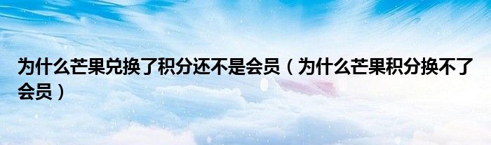 大家好,跳跳为你解答以上问题。为什么芒果兑换了积分还不是会员,为什么芒果积分换不了会员这个问题很多人还不知道,现在让我们一起来看看吧!