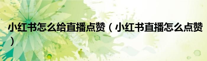 小红书怎么给直播点赞(小红书直播怎么点赞)