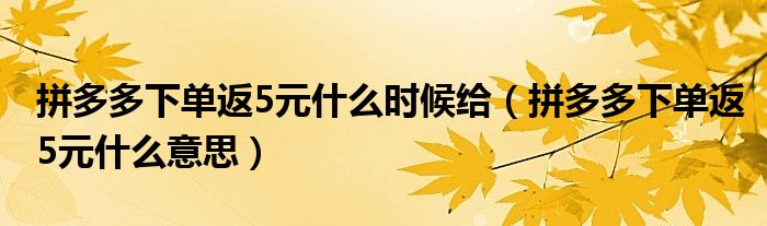 大家好,跳跳为你解答以上问题。拼多多下单返5元什么时候给,拼多多下单返5元什么意思这个问题很多人还不知道,现在让我们一起来看看吧!