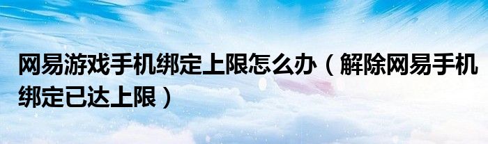 大家好,跳跳为你解答以上问题。网易游戏手机绑定上限怎么办,解除网易手机绑定已达上限这个问题很多人还不知道,现在让我们一起来看看吧!