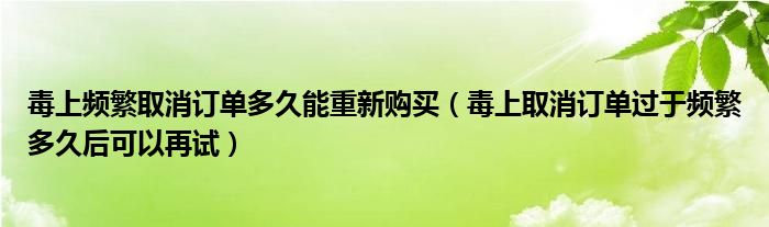 大家好,跳跳为你解答以上问题。毒上频繁取消订单多久能重新购买,毒上取消订单过于频繁多久后可以再试这个问题很多人还不知道,现在让我们一起来看看吧!