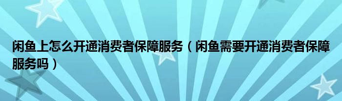 大家好,跳跳为你解答以上问题。闲鱼上怎么开通消费者保障服务,闲鱼需要开通消费者保障服务吗这个问题很多人还不知道,现在让我们一起来看看吧!