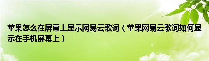 大家好,跳跳为你解答以上问题。苹果怎么在屏幕上显示网易云歌词,苹果网易云歌词如何显示在手机屏幕上这个问题很多人还不知道,现在让我们一起来看看吧!