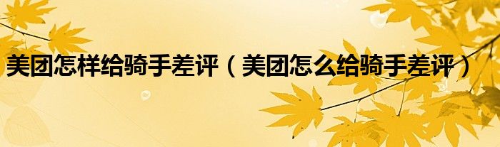 大家好,跳跳为你解答以上问题。美团怎样给骑手差评,美团怎么给骑手差评这个问题很多人还不知道,现在让我们一起来看看吧!