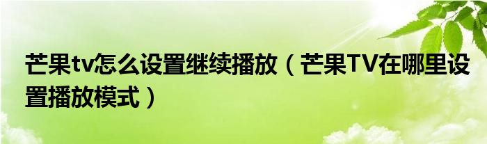 大家好,跳跳为你解答以上问题。芒果tv怎么设置继续播放,芒果TV在哪里设置播放模式这个问题很多人还不知道,现在让我们一起来看看吧!