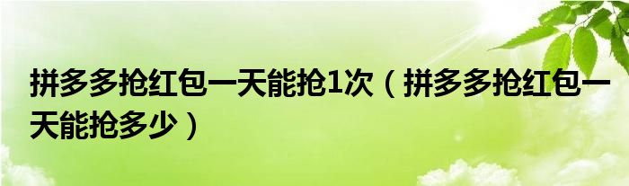 大家好,跳跳为你解答以上问题。拼多多抢红包一天能抢1次,拼多多抢红包一天能抢多少这个问题很多人还不知道,现在让我们一起来看看吧!