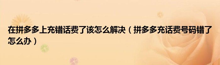 大家好,跳跳为你解答以上问题。在拼多多上充错话费了该怎么解决,拼多多充话费号码错了怎么办这个问题很多人还不知道,现在让我们一起来看看吧!