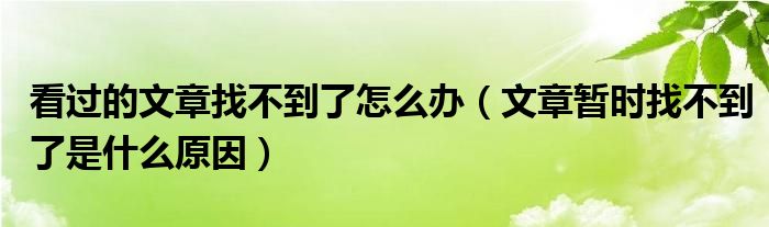 大家好,跳跳为你解答以上问题。看过的文章找不到了怎么办,文章暂时找不到了是什么原因这个问题很多人还不知道,现在让我们一起来看看吧!