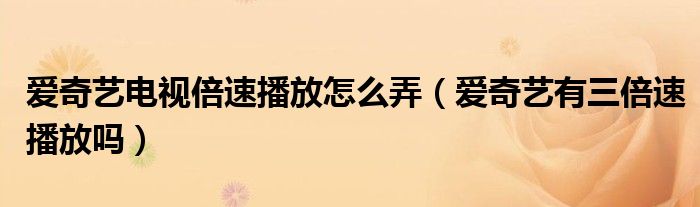2022年03月28日最新发布:大家好,小跳为你解答以上问题。爱奇艺电视倍速播放怎么弄,爱奇艺有三倍速播放吗这个问题很多人还不知道,现在让我们一起来看看吧!