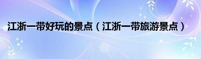 大家好,小晋来为大家解答以下问题,关于江浙一带好玩的景点,江浙一带旅游景点很多人还不知道,今天让我们一起来看看吧!