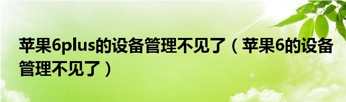 大家好,小晋来为大家解答以下问题,关于苹果6plus的设备管理不见了,苹果6的设备管理不见了很多人还不知道,今天让我们一起来看看吧!