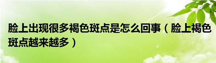 大家好,小晋来为大家解答以下问题,关于脸上出现很多褐色斑点是怎么回事,脸上褐色斑点越来越多很多人还不知道,今天让我们一起来看看吧!