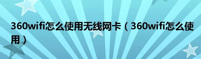 360wifi怎么使用无线网卡(360wifi怎么使用)
