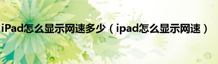 大家好,小晋来为大家解答以下问题,关于iPad怎么显示网速多少,ipad怎么显示网速很多人还不知道,今天让我们一起来看看吧!
