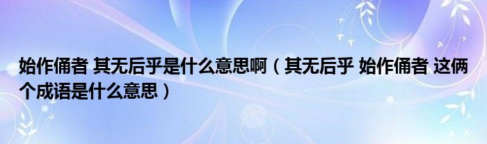 关于始作俑者 其无后乎是什么意思啊,其无后乎 始作俑者 这俩个成语是什么意思这个很多人还不知道,今天菲菲来为大家解答以上的问题,现在让我们一起来看看吧!
