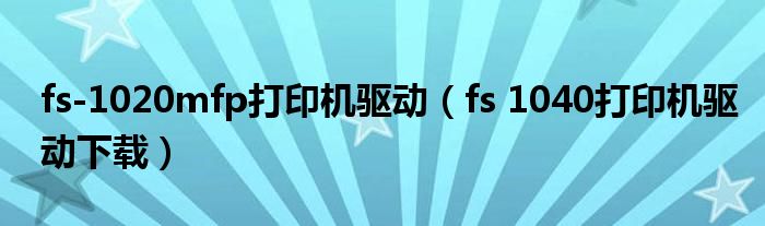 关于fs-1020mfp打印机驱动,fs 1040打印机驱动下载这个很多人还不知道,今天菲菲来为大家解答以上的问题,现在让我们一起来看看吧!