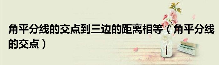 大家好,小晋来为大家解答以下问题,关于角平分线的交点到三边的距离相等,角平分线的交点很多人还不知道,今天让我们一起来看看吧!
