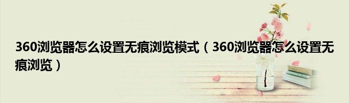 关于360浏览器怎么设置无痕浏览模式,360浏览器怎么设置无痕浏览这个很多人还不知道,今天菲菲来为大家解答以上的问题,现在让我们一起来看看吧!
