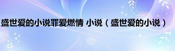 大家好,小晋来为大家解答以下问题,关于盛世爱的小说罪爱燃情 小说,盛世爱的小说很多人还不知道,今天让我们一起来看看吧!