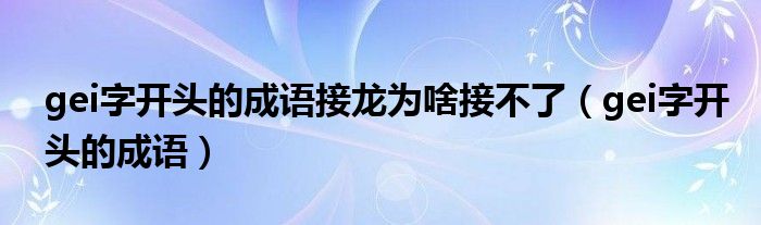 大家好,小晋来为大家解答以下问题,关于gei字开头的成语接龙为啥接不了,gei字开头的成语很多人还不知道,今天让我们一起来看看吧!