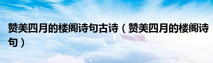 大家好,小晋来为大家解答以下问题,关于赞美四月的楼阁诗句古诗,赞美四月的楼阁诗句很多人还不知道,今天让我们一起来看看吧!