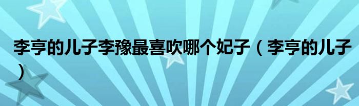 大家好,小晋来为大家解答以下问题,关于李亨的儿子李豫最喜吹哪个妃子,李亨的儿子很多人还不知道,今天让我们一起来看看吧!