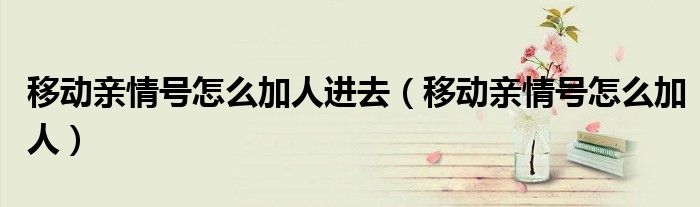 大家好,小晋来为大家解答以下问题,关于移动亲情号怎么加人进去,移动亲情号怎么加人很多人还不知道,今天让我们一起来看看吧!