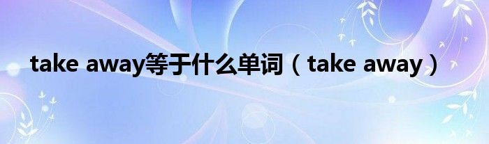 大家好,小晋来为大家解答以下问题,关于take away等于什么单词,take away很多人还不知道,今天让我们一起来看看吧!