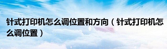 大家好,小晋来为大家解答以下问题,关于针式打印机怎么调位置和方向,针式打印机怎么调位置很多人还不知道,今天让我们一起来看看吧!