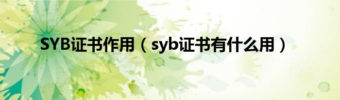 大家好,小晋来为大家解答以下问题,关于SYB证书作用,syb证书有什么用很多人还不知道,今天让我们一起来看看吧!