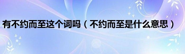大家好,小晋来为大家解答以下问题,关于有不约而至这个词吗,不约而至是什么意思很多人还不知道,今天让我们一起来看看吧!