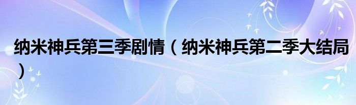 关于纳米神兵第三季剧情,纳米神兵第二季大结局这个很多人还不知道,今天菲菲来为大家解答以上的问题,现在让我们一起来看看吧!