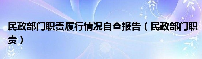 关于民政部门职责履行情况自查报告,民政部门职责这个很多人还不知道,今天菲菲来为大家解答以上的问题,现在让我们一起来看看吧!