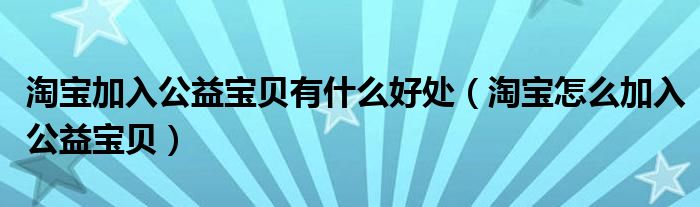关于淘宝加入公益宝贝有什么好处,淘宝怎么加入公益宝贝这个很多人还不知道,今天菲菲来为大家解答以上的问题,现在让我们一起来看看吧!