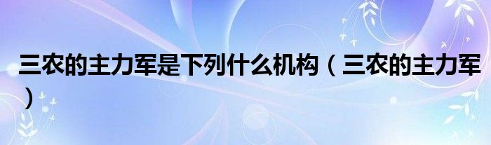 大家好,小晋来为大家解答以下问题,关于三农的主力军是下列什么机构,三农的主力军很多人还不知道,今天让我们一起来看看吧!
