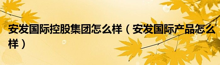 安发国际控股集团怎么样(安发国际产品怎么样)