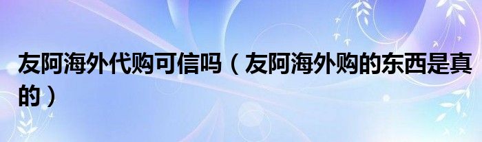 关于友阿海外代购可信吗,友阿海外购的东西是真的这个很多人还不知道,今天菲菲来为大家解答以上的问题,现在让我们一起来看看吧!