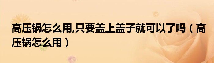 大家好,来宝来为大家解答以下问题,高压锅怎么用,只要盖上盖子就可以了吗,高压锅怎么用很多人还不知道,今天让我们一起来看看吧!