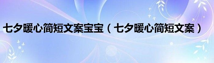 大家好,来宝来为大家解答以下问题,七夕暖心简短文案宝宝,七夕暖心简短文案很多人还不知道,今天让我们一起来看看吧!