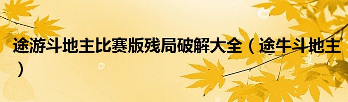 关于途游斗地主比赛版残局破解大全,途牛斗地主这个很多人还不知道,今天菲菲来为大家解答以上的问题,现在让我们一起来看看吧!