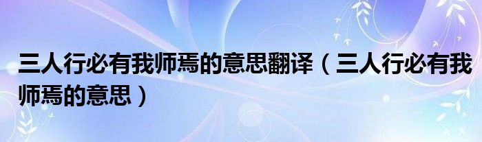 关于三人行必有我师焉的意思翻译,三人行必有我师焉的意思这个很多人还不知道,今天菲菲来为大家解答以上的问题,现在让我们一起来看看吧!