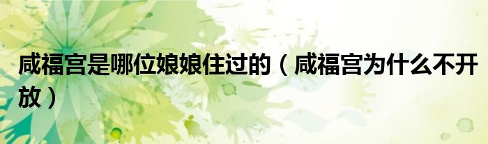 关于咸福宫是哪位娘娘住过的,咸福宫为什么不开放这个很多人还不知道,今天菲菲来为大家解答以上的问题,现在让我们一起来看看吧!