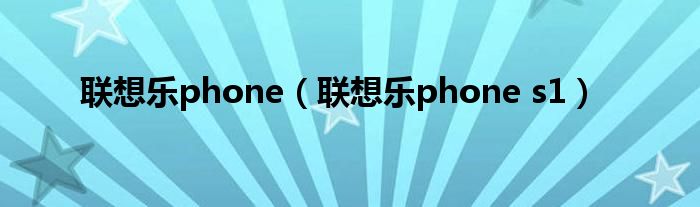 大家好,来宝来为大家解答以下问题,联想乐phone,联想乐phone s1很多人还不知道,今天让我们一起来看看吧!